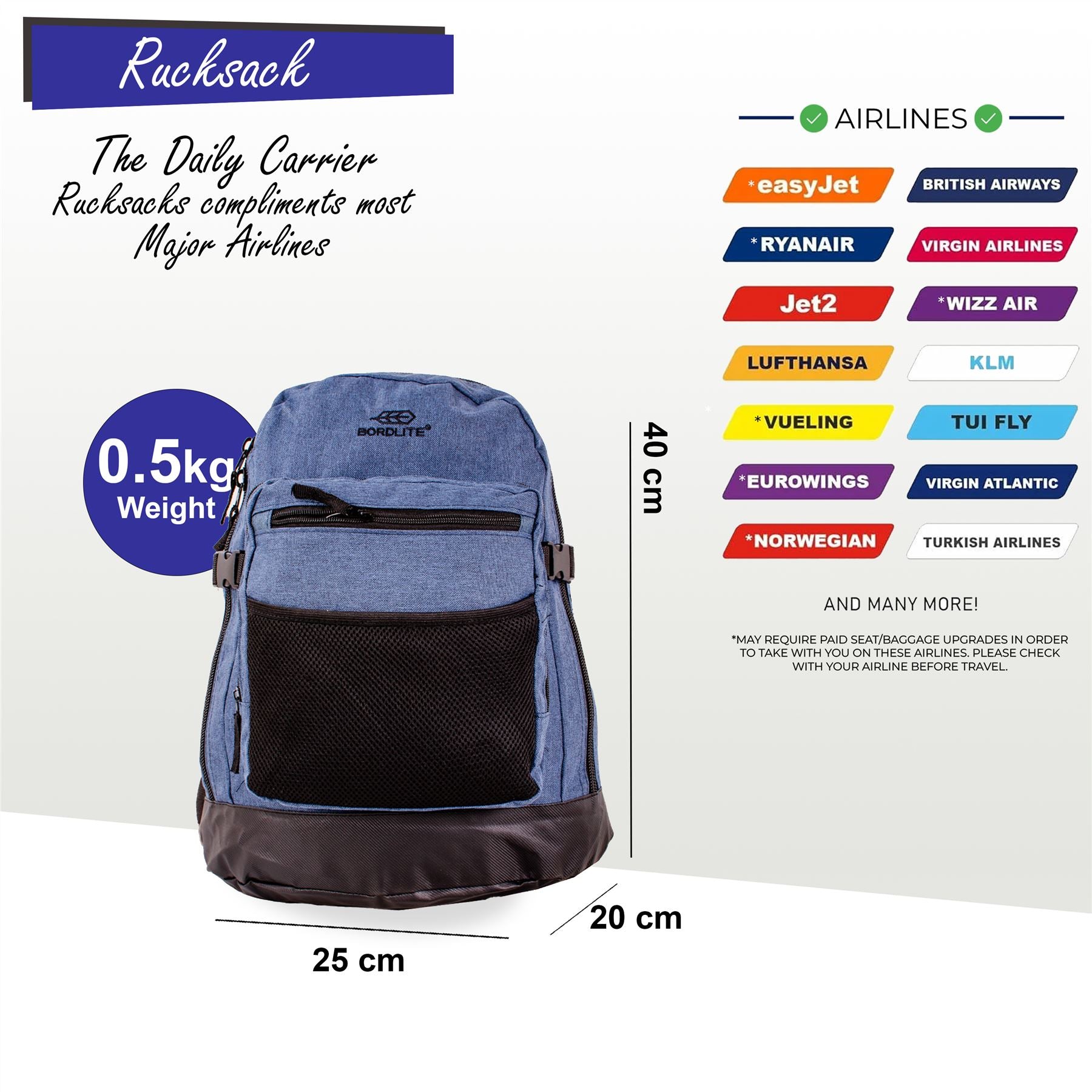 Backpack Rucksack 40x 20 x25cm Underseat Travel Cabin Bag for Ryanair, Easy Jet Navy